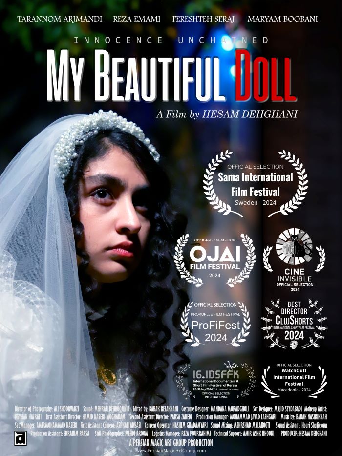"My Beautiful Doll" is the official selection for the competition section of the 25th Ojai Film Festival which takes place from October 30 to November 4 in Ojai, California. Also, it will be screened in Sama International Film Festival Stockholm, Sweden, 18-1 October 2024).